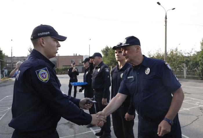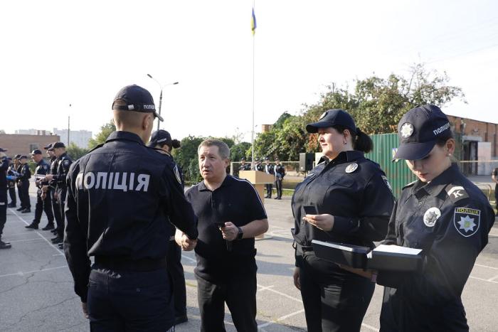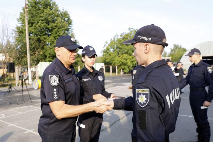 Ректор університету генерал поліції третього рангу Валерій Сокуренко привітав юнаків і дівчат: «Я переконаний, ви свідомо зробили вибір служити та захищати. Це не пусті слова, а філософія поліцейської діяльності. В університеті ви здобудете міцні знання, вміння, навички для того, щоб належним чином виконувати обов’язки правоохоронця. Від вас необхідні наполегливість, старання, а в тяжкий воєнний час – сміливість та рішучість. Беріть приклад із випускників Харківського національного університету внутрішніх справ – сумлінно навчайтеся, несіть службу, – і ви обов’язково станете начальниками райвідділів, ГУНП в областях, очільниками Національної поліції та МВС України. Служіть і навчайтеся так, щоб вас поважали люди й оберігав Господь Бог!».