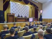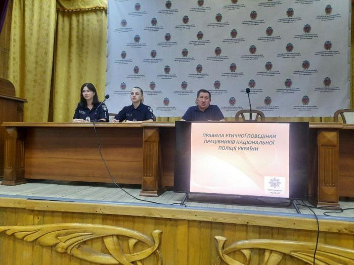 Проректор університету Анатолій Клочко, звертаючись до молоді, наголосив на важливості дотримання правил етичної поведінки працівниками поліції та курсантами. Представники Головного управління Національної поліції ознайомили молодь з основними вимогами, затвердженими відповідним наказом, та на конкретному прикладі проаналізували правильність дій і поведінки працівників поліції. Інструктори зазначили, що дотримання етичних правил впливає на якість виконання правоохоронцями службових обов’язків, підвищує імідж Національної поліції та сприяє формуванню довірливих стосунків з населенням та подальшій конструктивній співпраці.