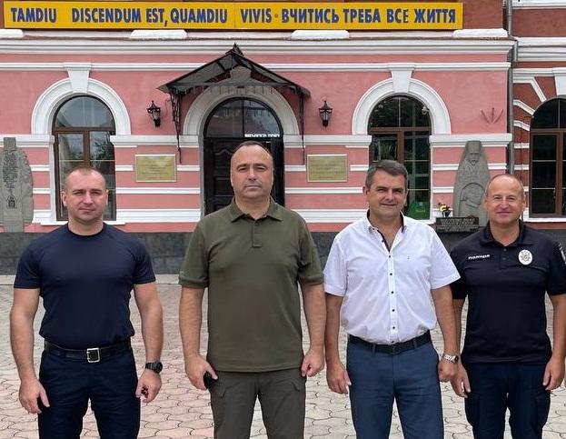 У День знань Харківський національний університет внутрішніх справ відвідали заступник голови Хмельницької ОВА Володимир Юр’єв, начальник Кам’янець-Подільського районного управління Головного управління Державної служби України з надзвичайних ситуацій у Хмельницькій області Віталій Мельник, начальник Кам’янець-Подільського районного управління поліції ГУНП в Хмельницькій області Василь Шкіндюк. Разом із проректором вишу Олександром Музичуком, деканами факультету № 4 Миколою Марчуком та факультету № 1 Віталієм Романюком вони оглянули аудиторії навчального корпусу, кабінет безпеки університету, обговорили низку робочих питань щодо подальшої співпраці.