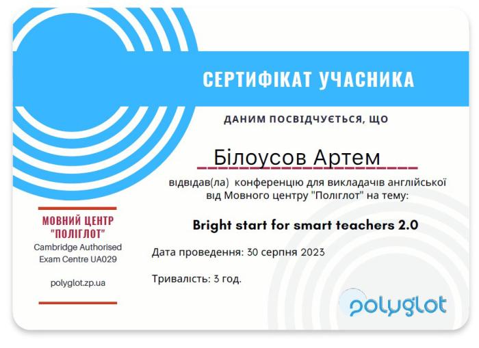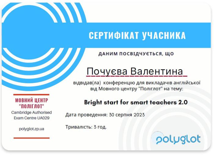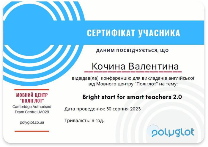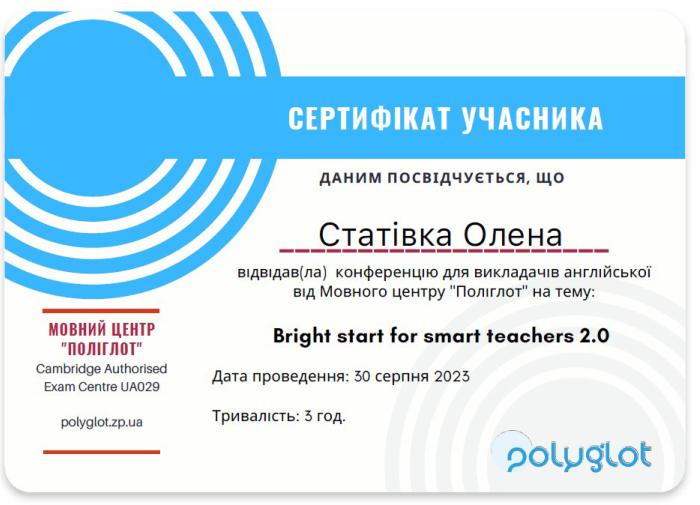 Науково-педагогічний склад кафедри іноземних мов факультету № 4 ХНУВС – завідувачка кафедри Олена Статівка, доценти цієї ж кафедри Олег Гончарук, Валентина Кочина, Валентина Почуєва, старші викладачі Артем Білоусов та Лариса Сазанова – відвідали конференцію для викладачів англійської мови від Мовного центру «Поліглот» на тему «Bright start for smart teachers 2.0».