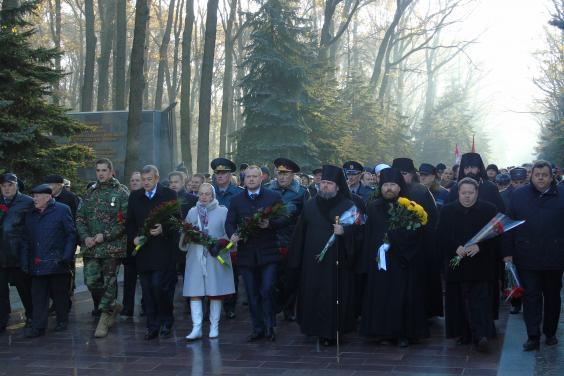 Вшанувати пам'ять загиблих у Другій світовій війні під час визволення України прийшли представники обласної та міської влади, депутати, ветерани війни, духовенство, громадськість, а також курсанти, студенти і школярі.