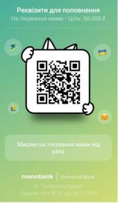 або за посиланням https://send.monobank.ua/jar/2wN9MVMkqU або за допомогою qr-коду (нижче)