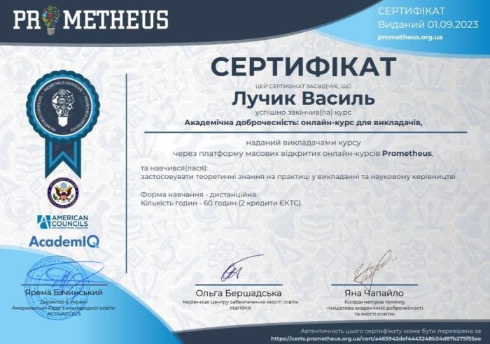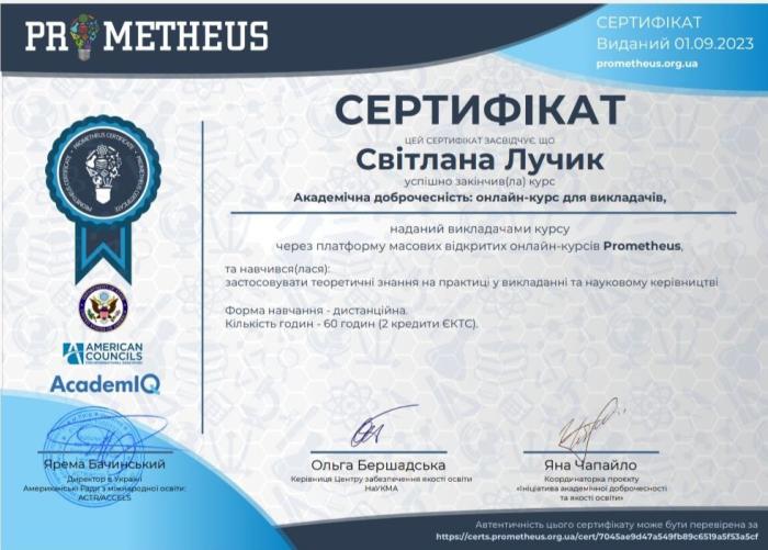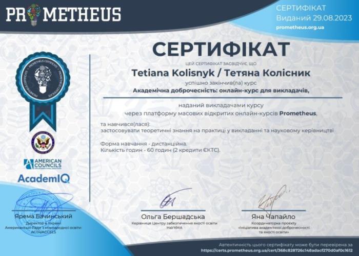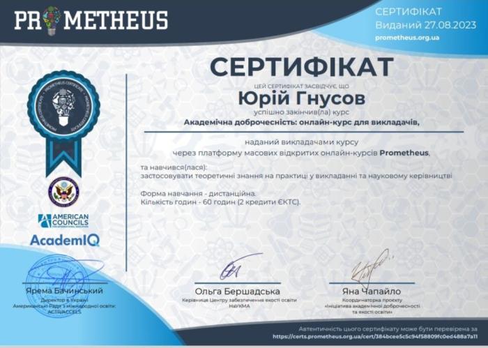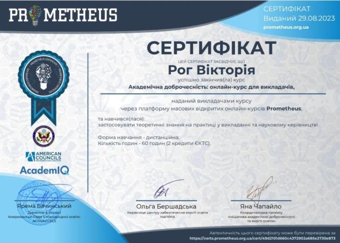 Науково-педагогічний склад факультету № 4 та кафедри кібербезпеки та DATA-технологій факультету № 6 ХНУВС пройшли онлайн-курс «Академічна доброчесність: онлайн-курс для викладачів» на платформі Prometheus та отримали відповідні сертифікати.