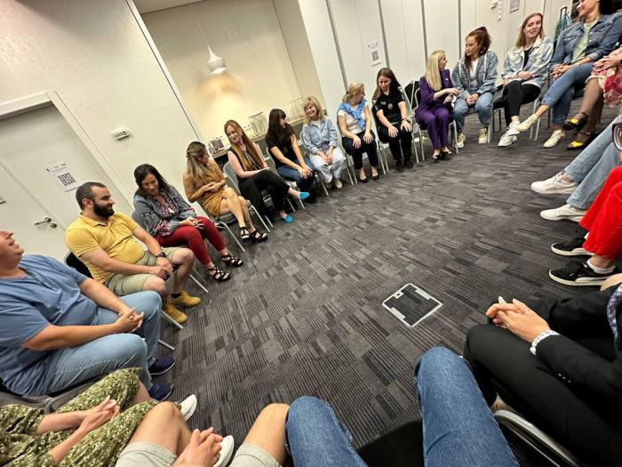 Тренерками та тренерами на заході виступили: Галина Жуковська – старша референтка Апарату Урядової уповноваженої з питань ґендерної політики; Ольга Перунова – заступниця начальника Управління моніторингу дотримання прав людини Міністерства внутрішніх справ, доктор в галузі права; Наталія Карбовська – директорка зі стратегічного розвитку Українського Жіночого Фонду; Анжеліка Сергієць – координаторка проєктів Українського Жіночого Фонду; Юлія Ніколайчук – програмна менеджерка Української асоціації представниць правоохоронних органів; Катерина Бороздіна – віцепрезидентка ГО «Ла Страда-Україна»; Євген Боженко – психолог Центру психічного здоров’я «Національного університету «Києво-Могилянська академія», консультант та супервізор СЕТА (університет Джонса Хопкінса, США), тренер з кризового менеджменту; Олександра Бурлаченко – психологиня Центру психічного здоров’я «Національного університету «Києво-Могилянська академія», травмафокусована психотерапевтка, тренерка з превенції суїциду.