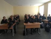 Професор кафедри теорії та історії держави і права факультету № 1 ХНУВС Дмитро Слинько та доцент цієї ж кафедри Віктор Лазарєв спільно з начальником сектору захисту прав людини Кам’янець-Подільського РУП ГУНП в Хмельницькій області Віталієм Кавкалом та працівницями сектору провели бінарне заняття з дисципліни «Юридична деонтологія» для курсантів однієї з навчальних груп факультету № 1 на тему «Юридична професія».