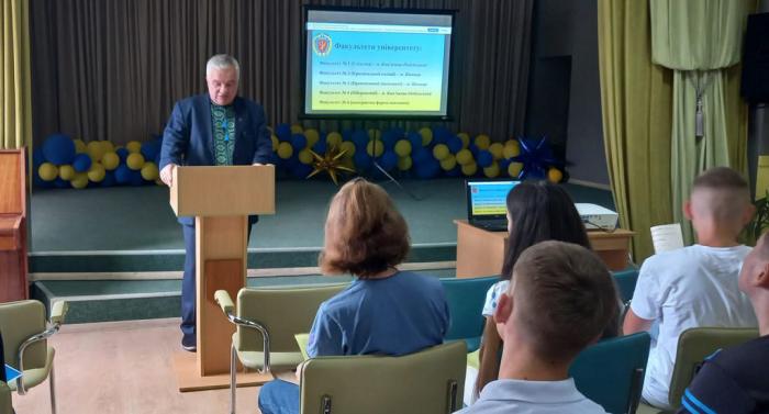 У зустрічі взяли участь близько 80 випускників чотирьох одинадцятих класів, які дізналися про особливості та переваги навчання у Харківському національному університеті внутрішніх справ, ознайомилися з факультетами та спеціальностями вишу, переглянули відеоролики та отримали профорієнтаційну продукцію.