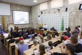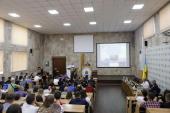 Президент Вінницького національного аграрного університету академік НААН України, доктор економічних наук, професор Григорій Калетнік представив студентсько-курсантській спільноті академіка НААН України, доктора сільськогосподарських наук, віце-прем'єр-міністра з питань АПК (2005–2006 рр.), міністра аграрної політики України (2006–2010 рр.), Героя України, а зараз першого заступника виконавчого директора «Миронівський хлібопродукт» Юрія Мельника. Григорій Калетнік подякував ректору ХНУВС Валерію Сокуренку за плідну міжуніверситетську співпрацю у напрямі просвітницької роботи з молоддю та закликав присутніх бути активними й ставити гостю запитання, які цікавлять.
