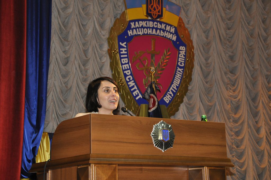 Голова Національної поліції України Хатія Деканоідзе з робочим візитом відвідала Харківський національний університет внутрішніх справ. Вона зустрілася з курсантами, науково-педагогічним складом навчального закладу та випускниками курсів підвищення кваліфікації.