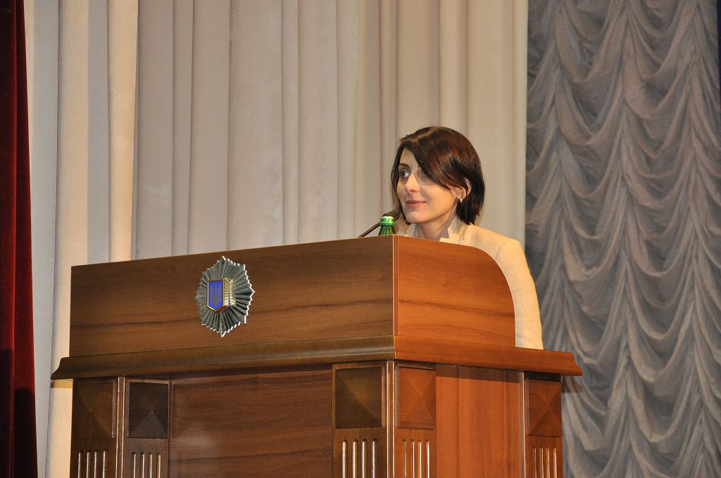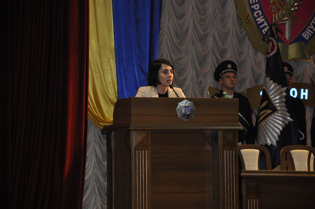 Звертаючись до присутніх, голова Національної поліції України зазначила, що їй дуже приємно бачити колег, які знову сіли за парти, щоб набути нових знань, а також курсантів, які щойно вступили до університету, але на них – майбутніх фахівців, уже чекають в практичних підрозділах. Також вона подякувала ректору та колективу університету за розуміння та підтримку реформ: «Перед нами стоїть багато завдань і викликів. Ми нікому не віддамо нашу країну. Як нова українка, я буду робити все, щоб наша держава стала квітучою і заможною».
