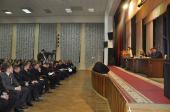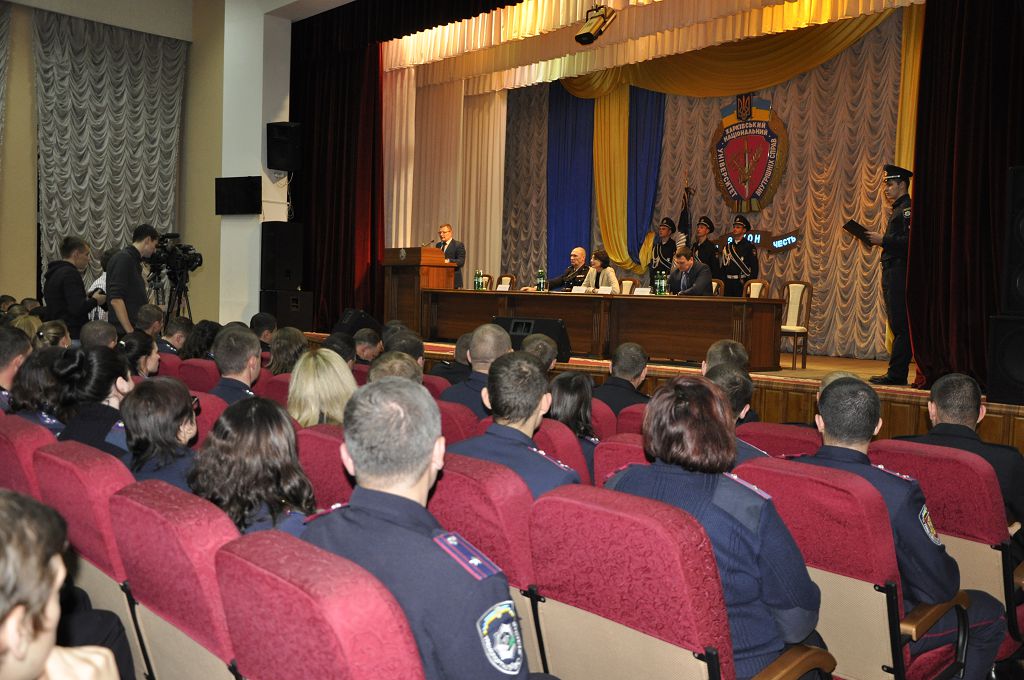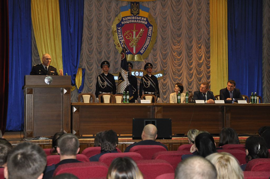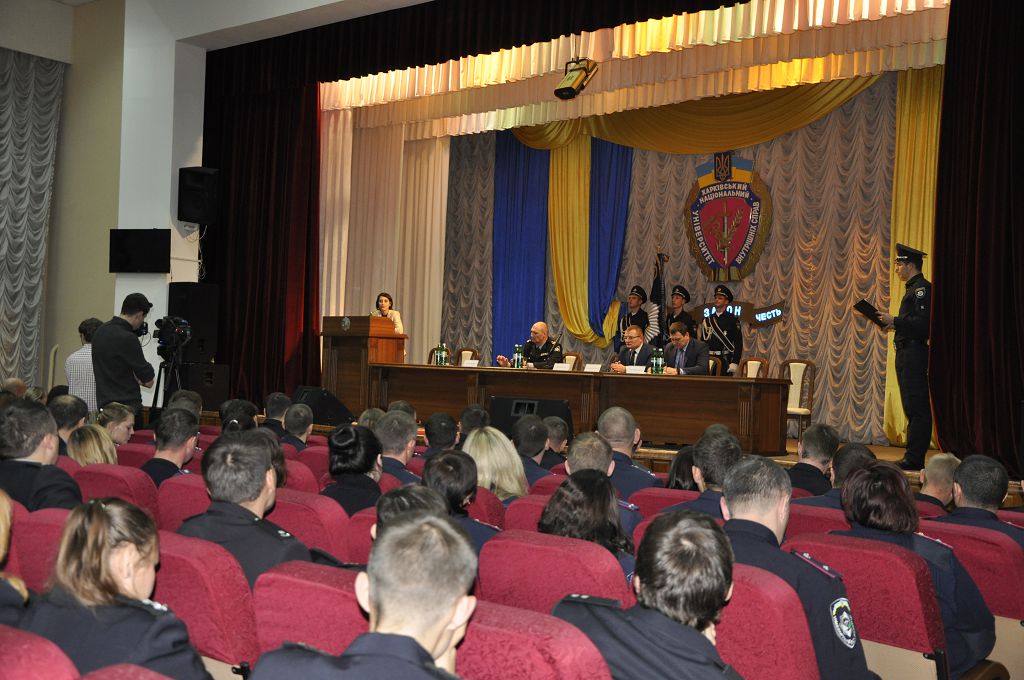 Ректор університету Валерій Сокуренко подякував керівництву Національної поліції за високу оцінку діяльності колективу університету у справі підготовки кадрів, підкресливши, що «це – висока довіра, яку ми повинні виправдовувати». Він також зазначив, що сьогодні до навчального процесу активно залучаються фахівці-практики, які мають значний досвід роботи в практичних підрозділах і можуть навчати молодь не лише за підручниками, але й спиратися на власний досвід. «В університеті ми багато уваги приділяємо патріотичному вихованню молоді. Кожен, хто навчається в стінах нашого закладу, є справжнім патріотом нашої держави, а захист прав и свобод громадян для нас є святим обов’язком», - зазначив ректор.