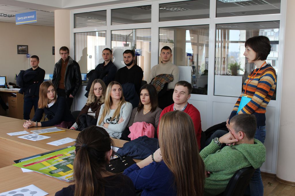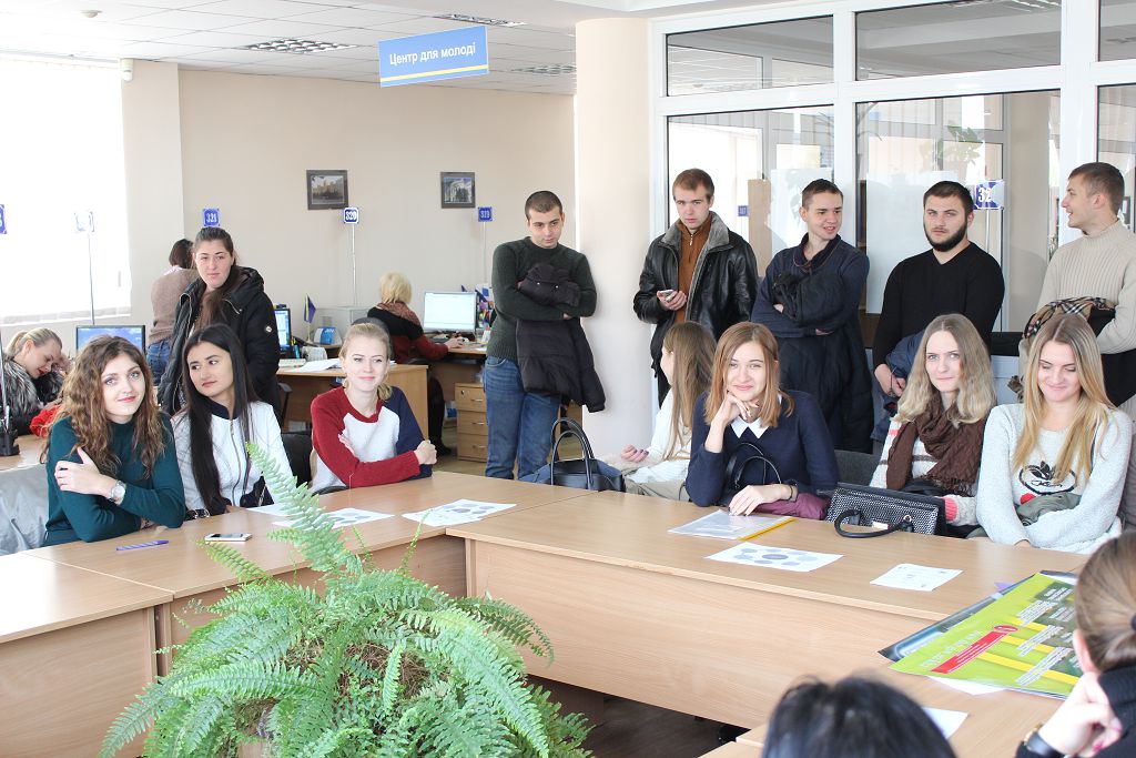 Під час зустрічі провідний фахівець з профорієнтації Харківського міського центру зайнятості Наталя Поставна ознайомила студентів із сучасним станом ринку праці в Харківській області, надала низку корисних порад щодо вибору місця роботи, складання резюме, підготовки мотиваційних листів тощо.