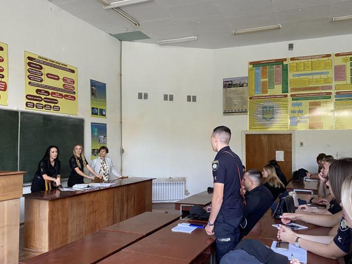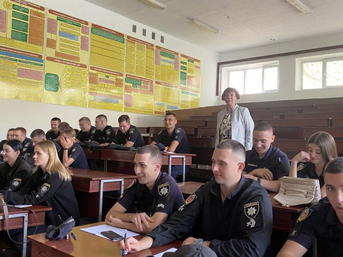 Викладачка ознайомила курсантів з термінологією за темою, обговорила визначення понять «місце злочину», «місце події» та «огляд місця події». Працівники поліції Анастасія Корольова та Юлія Якимчук поділилися досвідом роботи в підрозділах, розповіли про завдання та етапи огляду місця події. Такі заняття за участі працівників поліції сприяють підвищенню рівня знань та обізнаності курсантів щодо роботи слідчих підрозділів та підрозділів превентивної діяльності.