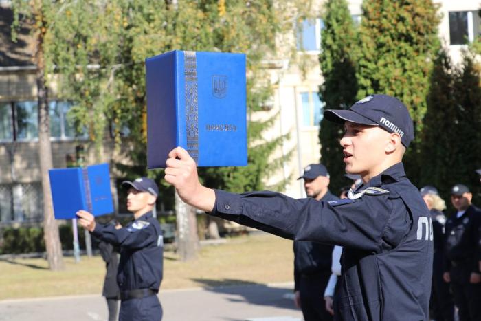 Складаючи Присягу, майбутні працівники поліції запевнили, що вірно служитимуть Українському народові і завжди керуватимуться Законом та Конституцією України.