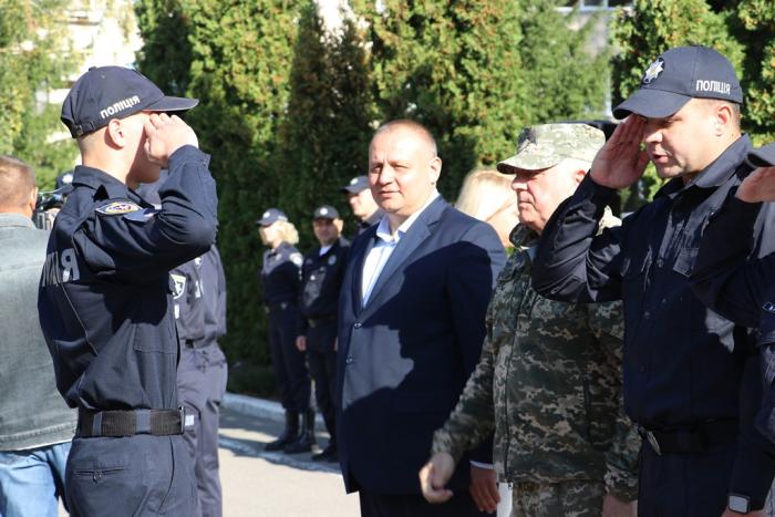 У супроводі духового оркестру Головного управління Національної поліції України в Сумській області першокурсники пройшли першим у своєму житті парадним маршем.