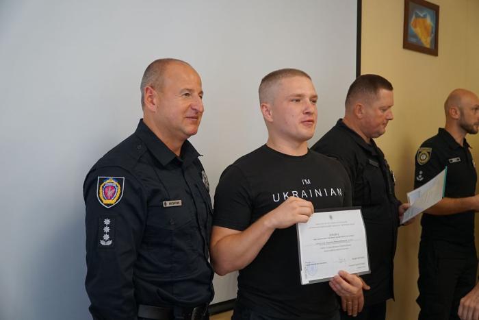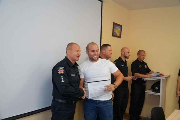 Довідки про успішне закінчення первинної професійної підготовки випускникам вручили проректор вишу полковник поліції Олександр Музичук, начальник ГУНП в Хмельницькій області полковник поліції Руслан Герасимчук, начальник відділу протидії кіберзлочинам в Хмельницькій області Департаменту кіберполіції НПУ підполковник Олег Дядик, декан факультету № 4 підполковник поліції Микола Марчук.