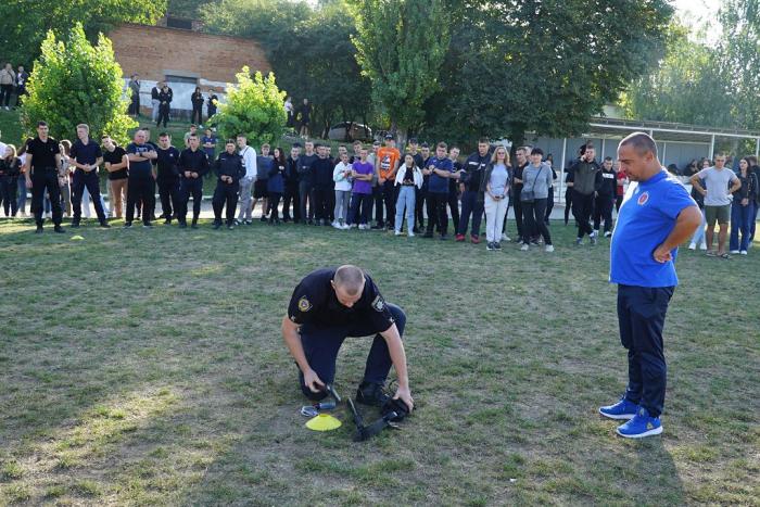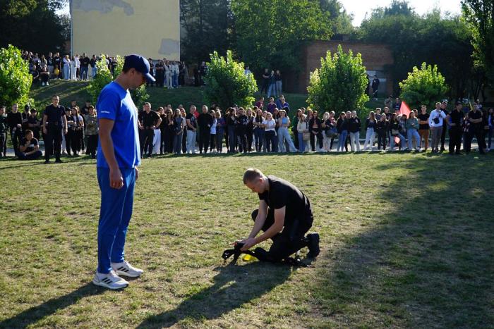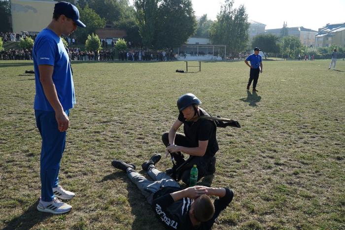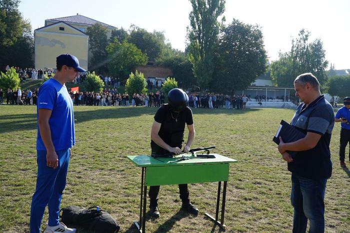 Головний суддя змагань, викладач кафедри тактичної та спеціальної фізичної підготовки факультету № 3 Богдан Лукін оголосив умови проведення спортивної програми.