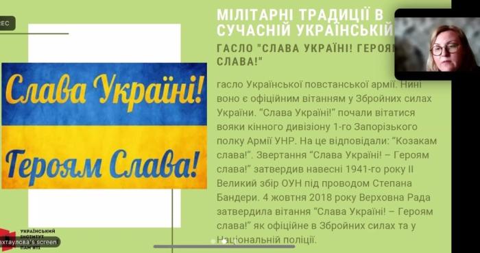 Марія Тахтаулова пояснила студентам походження та суть Дня захисників і захисниць України. Окремо було проілюстровано українські мілітарні традиції, які йдуть від періодів боротьби за українську державність і вшановують героїв України.