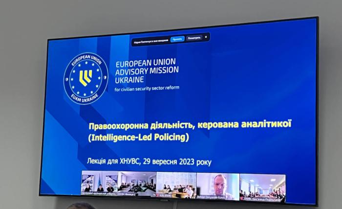 У межах співпраці Харківського національного університету внутрішніх справ з Консультативною місією Європейського Союзу в Україні у Школі наукового лідерства вишу відбулося заняття на тему «Правоохоронна діяльність, керована аналітикою (ILP) – сучасна модель правоохоронної діяльності. Аналітика, аналітична розвідка у прийнятті обґрунтованих, ефективних та результативних управлінських рішень». Заняття провів експерт із питань спеціалізованих правоохоронних органів Консультативної місії Європейського Союзу в Україні Богдан Денисенко.