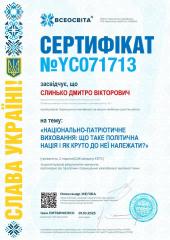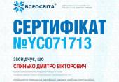 Дмитро Слинько пройшов тестування та за його результатами отримав відповідний сертифікат. Набуті компетентності будуть використані в освітньому процесі.