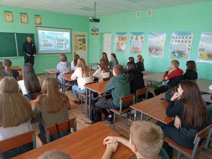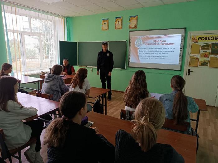 Курсанти розповіли про особливості вступу до Харківського національного університету внутрішніх справ та Сумської філії ХНУВС, про терміни подання документів для вступу на навчання за державним замовленням за спеціальністю «Правоохоронна діяльність». Курсанти поділилися власним досвідом проходження етапів вступу до Сумської філії ХНУВС у 2023 році. Під час спілкування школярі ставили багато запитань та отримали на них відповіді.