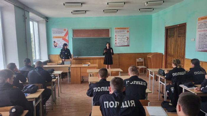 Доцентка кафедри педагогіки та психології факультету № 3 Ольга Медведєва разом з інспектором - черговим ВПД 1 Кам'янець-Подільського РУП ГУНП в Хмельницькій області Оленою Соколовською провели бінарне заняття для курсантів 2 курсу факультету № 4 ХНУВС за темою «Професійне спілкування працівника поліції».