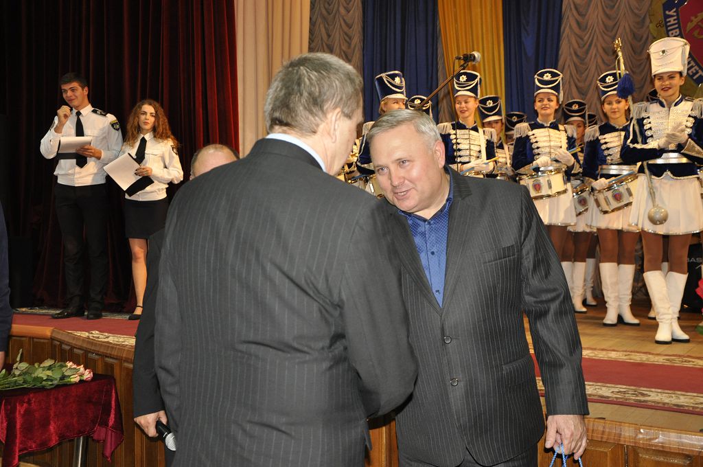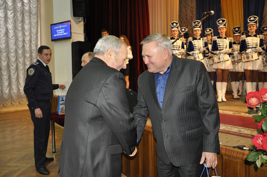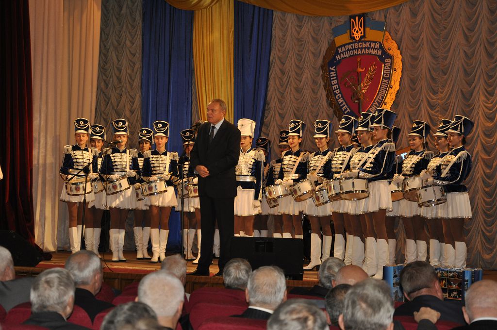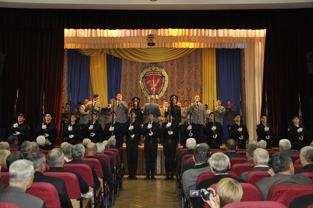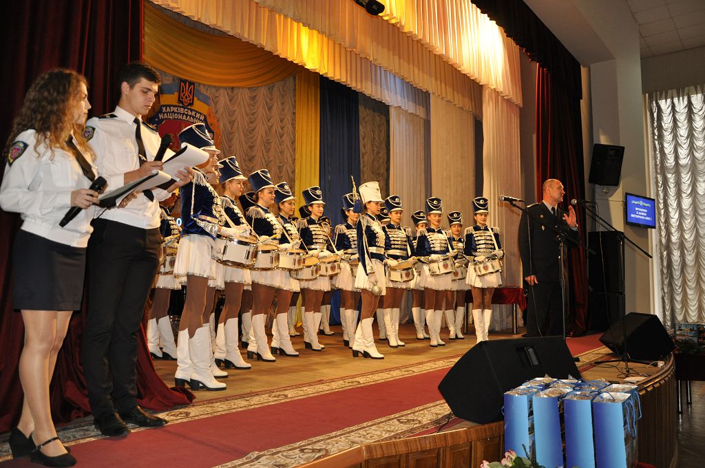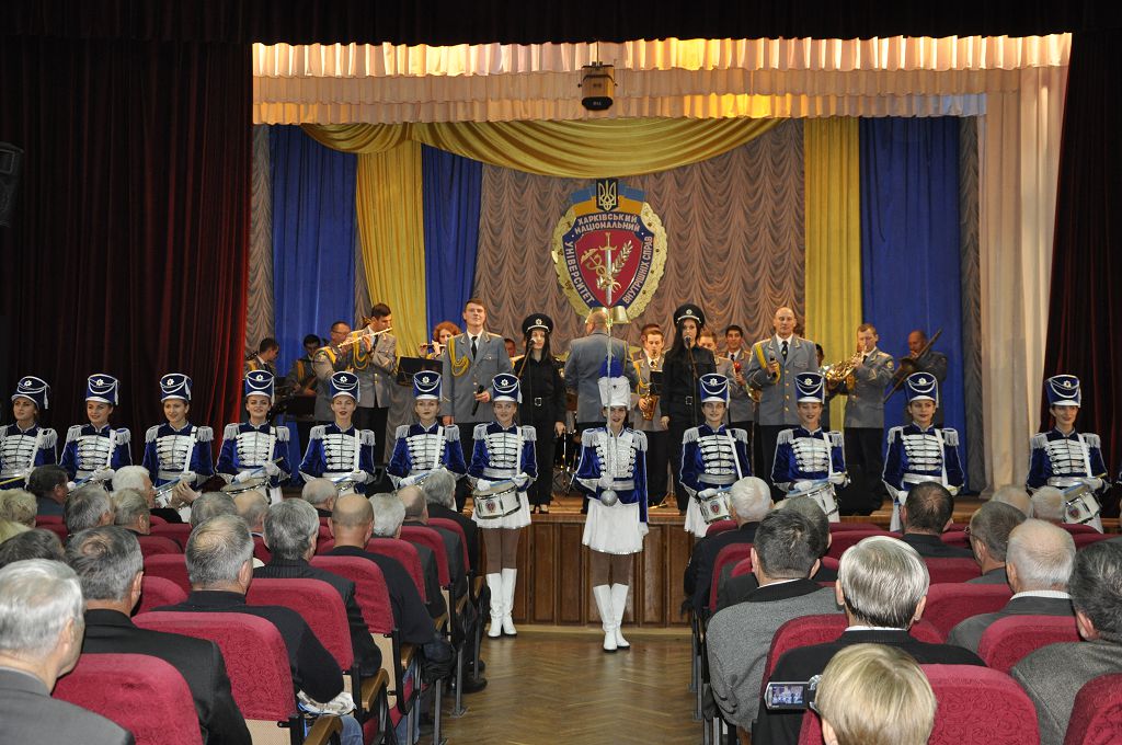 Зустріч продовжилася в актовому залі університету. Звертаючись до ветеранів зі словами вітання, ректор університету подякував їм за співпрацю, побажав щастя, здоров’я, довгих років життя та здійснення усіх задумів. Від імені начальника ГУНП в Харківській області генерала поліції третього рангу Анатолія Дмитрієва привітав ветеранів зі святом заступник начальника Валерій Пахомов. Присутній на урочистостях Міністр внутрішніх справ України у 2001–2003 рр., генерал-полковник міліції, який свого часу очолював Головне управління Міністерства внутрішніх справ України в Харківській області, харків’янин Юрій Смирнов у своєму виступі наголосив, що «історія правоохоронних органів – це історія мужності, героїзму, відданого служіння в ім’я нашої держави і нашого народу. Твердо вірю в те, – зазначив Юрій Олександрович, – що напрацьований десятиліттями дорогоцінний досвід буде використаний у підготовці нових поколінь правоохоронців».