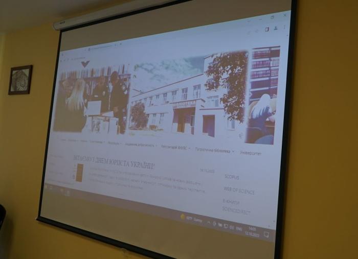 Фахівчинями наукової бібліотеки ХНУВС – начальницею відділу книгозберігання Ольгою Лазаревою та бібліотекаркою Жанною Лазоренко розпочато проведення занять щодо виховання навичок інформаційно-бібліографічної культури та дотримання академічної доброчесності для курсантів-першокурсників факультетів № 1 та № 4. Здобувачів вищої освіти ознайомили з послугами та правилами користування інформаційним потенціалом бібліотеки, бібліотечним порталом, електронним каталогом, цифровим доступом до навчальної літератури, базою «НММ», репозиторієм ХНУВС, академічною доброчесністю, цифровим проєктом «Патріотична бібліотека», віртуальним тематичним контентом «Дайджест нових надходжень», а також «Віртуальним навігатором по електронним навчальним та науковим ресурсам».