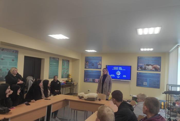 Доцент кафедри криміналістики, судової експертології та домедичної підготовки Тетяна Орлова ознайомила з алгоритмом надання першої невідкладної домедичної допомоги, продемонструвала на манекенах способи зупинки критичної кровотечі, проведення серцево-легеневої реанімації.
