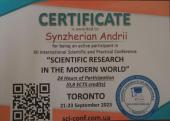Курсант 3 курсу факультету № 4 Харківського національного університету внутрішніх справ Андрій Синжерян взяв участь у XII Міжнародній науково-практичній конференції «Scientific research in modern world», що відбулась у м. Торонто, Канада. Під час ранкового шикування декан факультету Микола Марчук вручив курсанту сертифікат учасника.