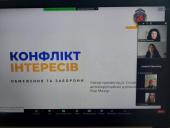 Яна Мазур розповіла про сутність та види конфлікту інтересів, охарактеризувала ключові категорії, які входять до понять реального та потенційного конфлікту інтересів, алгоритм дій щодо самостійного та зовнішнього врегулювання конфлікту інтересів. Також були розглянуті встановлені Законом України «Про запобігання корупції» обмеження, встановлені з метою недопущення виникнення конфлікту інтересів в діяльності осіб, уповноважених для виконання функцій держави або місцевого самоврядування.