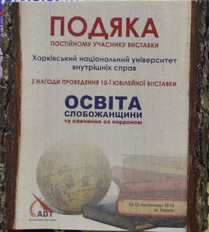 З нагоди проведення ювілейної виставки представникам Харківського національного університету внутрішніх було вручено Подяку як постійному її учаснику.