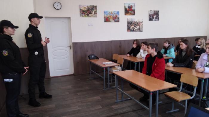 Доцентка кафедри соціально-економічних дисциплін Сумської філії Харківського національного університету внутрішніх справ Світлана Виганяйло разом із курсантами 3 курсу Дмитром Яненком та Анастасією Пугич провели профорієнтаційну бесіду зі старшокласниками Сумської загальноосвітньої школи І-ІІІ ступенів № 13 ім. А. С. Мачуленка.