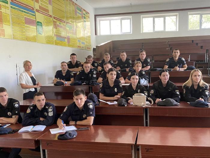 Слідча відділення розслідування злочинів Ковельського РУП ГУНП у Волинській області Анастасія Корольова, дільнична офіцер поліції відділу превенції Шепетівського РУП ГУНП у Хмельницькій області Юлія Якимчук та доцентка кафедри іноземних мов факультету № 4 ХНУВС Валентина Кочина провели бінарне заняття для курсантів 4 курсу факультету № 1 за темою «Обшук та конфіскація».