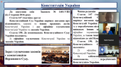 Окрему увагу доповідачка приділила організаційним питанням діяльності КСУ, до яких увійшли: порядок призначення та вимоги до суддів, їх повноваження, порядок та форми звернень, процедура розгляду звернень, принцип гласності судових засідань. Вона наголосила, що діяльність Конституційного Суду України спрямована на забезпечення демократичного, правового режиму та дотриманням принципу верховенства права органами державної влади.