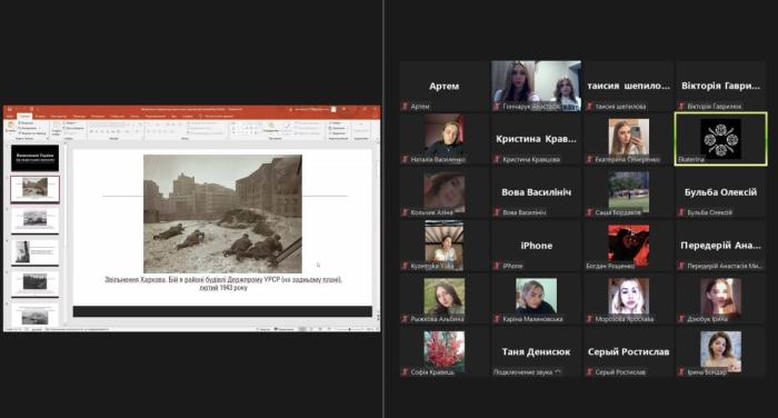Під час відеопрезентації увагу слухачів було акцентовано на тому, що сьогодні, як і 79 років тому, українці знову визволяють свої землі від загарбників, ціною життя стоять на захисті незалежності та територіальної цілісності.