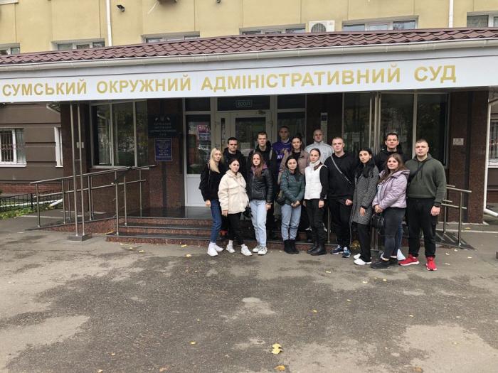 Курсанти групи 203 Сумської філії ХНУВС разом зі професором кафедри юридичних дисциплін Олексієм Шумілом для закріплення теоретичних знань із навчальної дисципліни «Судові та правоохоронні органи України» відвідали Сумський окружний адміністративний суд.