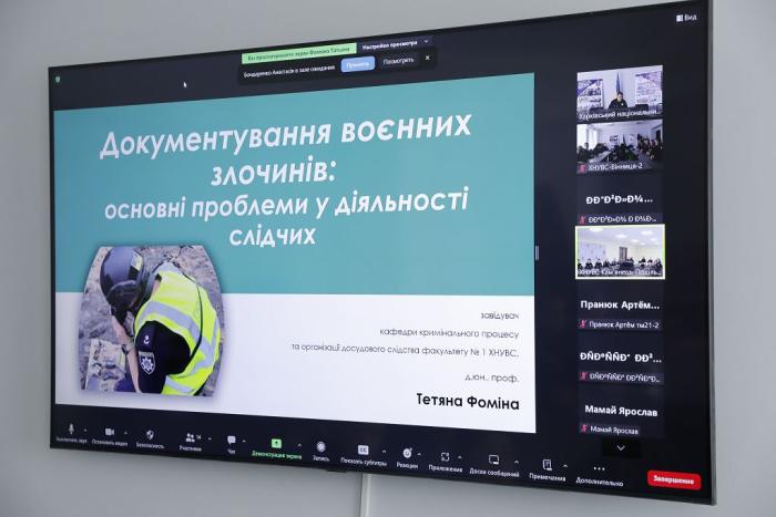 Завідувачка кафедри кримінального процесу та організації досудового слідства факультету № 1 Тетяна Фоміна провела факультативне заняття Школи наукового лідерства ХНУВС на тему «Документування воєнних злочинів: основні проблеми у діяльності слідчих».