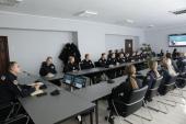 Тетяна Фоміна в інтерактивній формі розповіла учасникам про особливості документування воєнних злочинів та їх правового регулювання на рівні міжнародно-правових актів і національного законодавства, а також проблеми їх розслідування в умовах воєнного стану. Окремо доповідачка розповіла про особливості проведення ексгумації тіл загиблих, які були поховані на лісовому кладовищі за час російської окупації міста Ізюм на Харківщині, труднощі документування авіаудару російських військ по житловому будинку в Ізюмі, а також інші воєнні злочини. Їх розслідуванням у новітніх безпекових реаліях з проведенням тисяч надскладних і тривалих судових експертиз займаються слідчі органів досудового розслідування Національної поліції України. Під час заняття було наведено статистичні дані з офіційного сайту Офісу Генерального прокурора, а також окреслено практичні труднощі, що виникли перед органами досудового розслідування.