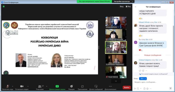 Лектор висвітлив актуальні питання психосоціальних досліджень Української школи архетипіки, зокрема флуктуаційні зміни коду культури України. Він проаналізував динаміку індикаторів соцієтальних змін та процеси ідентифікації в Україні.