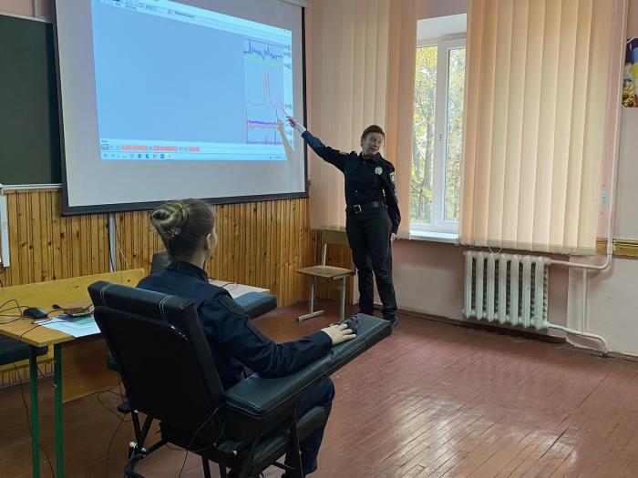 Для підвищення практичної підготовки слухачів магістратури, які навчаються за спеціальностями «Психологія» і «Правоохоронна діяльність», завідувачка відділу психологічного забезпечення сертифікована поліграфолог Наталія Новікова та завідувачка кафедри педагогіки та психології Олена Федоренко провели бінарне заняття на тему «Застосування поліграфу як інструменту психофізіологічних досліджень в Національній поліції України».