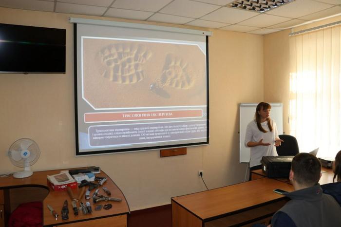 Для учнів Сумського закладу загальної середньої освіти № 26 Сумської міської ради доцентка кафедри гуманітарних дисциплін Сумської філії ХНУВС Юлія Самойлова разом із колегами – провідним фахівцем Валерієм Кудрявцевим та викладачкою кафедри юридичних дисциплін Євгенією Манько – організувала професіографічну екскурсію. Майбутніх абітурієнтів ознайомили з криміналістикою як наукою, обговорили її основні завдання та напрями роботи. На наочних прикладах вчилися здійснювати різні криміналістичні дослідження.