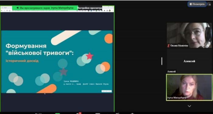 Старша викладачка кафедри соціально-гуманітарних дисциплін факультету № 6 кандидатка історичних наук, доцентка Оксана Малютіна спільно з професоркою Донецького національного університету імені Василя Стуса, медіатренеркою, докторкою політичних наук Іриною Мацишиною провели бінарне заняття зі студентами навчальної групи факультету №6 ХНУВС на тему «Формування «військової тривоги»: історичний досвід». Медіатренерка охарактеризувала поняття «тривоги» та інструменти формування «військової тривоги» в історичному контексті. Інтерактивні прийоми дозволили з’ясувати, що у стані невизначеності тривожна людина стає заручником впливу інформації, нею легко маніпулювати та її зручно контролювати. Наприкінці 20-х років ХХ ст. у медіапростір була впроваджена парадигма ідеологічного протистояння капіталістичних та соціалістичної країн і відпрацьовані інструменти та техніки керування суспільною тривогою. Радянська влада використовувала механізми нагнітання, дипломатію шантажу, розгойдування ситуації тощо. Проведені історичні паралелі доводять, що базові інструменти впливу на свідомість людей стали більш технологічними, але не змінилися за своєю суттю. Набуті під час заняття знання допоможуть студентам коригувати своє ставлення до негативних інформаційних впливів, напрацьовувати практику критичного мислення як до інформаційних продуктів, так і до технік їх просування.