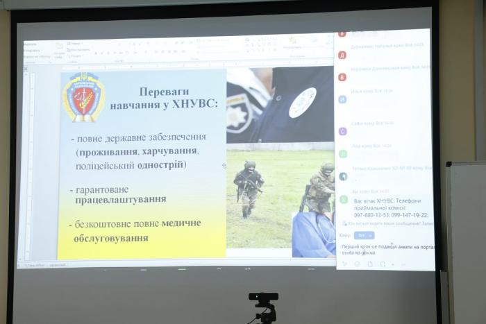 Відділом рекрутингу та організації профорієнтаційної роботи проведено онлайн-зустріч щодо особливостей вступу та навчання у Харківському національному університеті внутрішніх справ у 2024 році для майбутніх абітурієнтів – курсантів (бюджетна форма навчання) та студентів (за кошти фізичних і юридичних осіб).