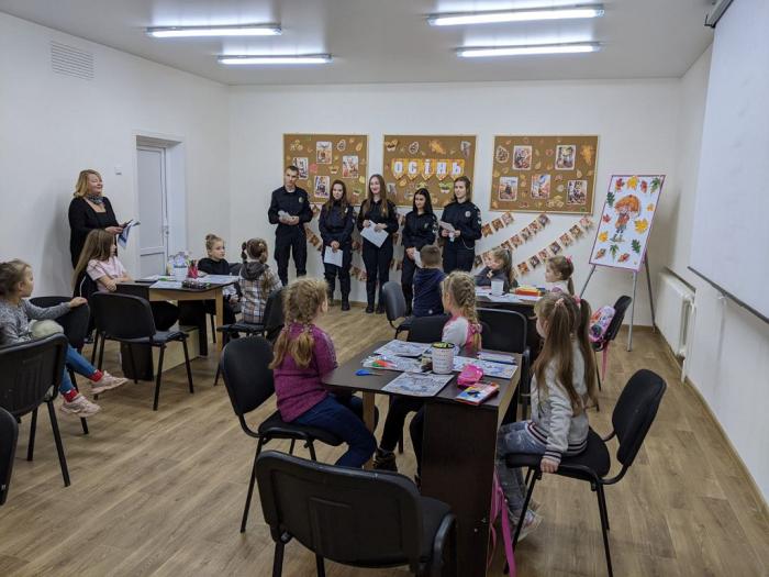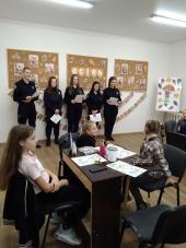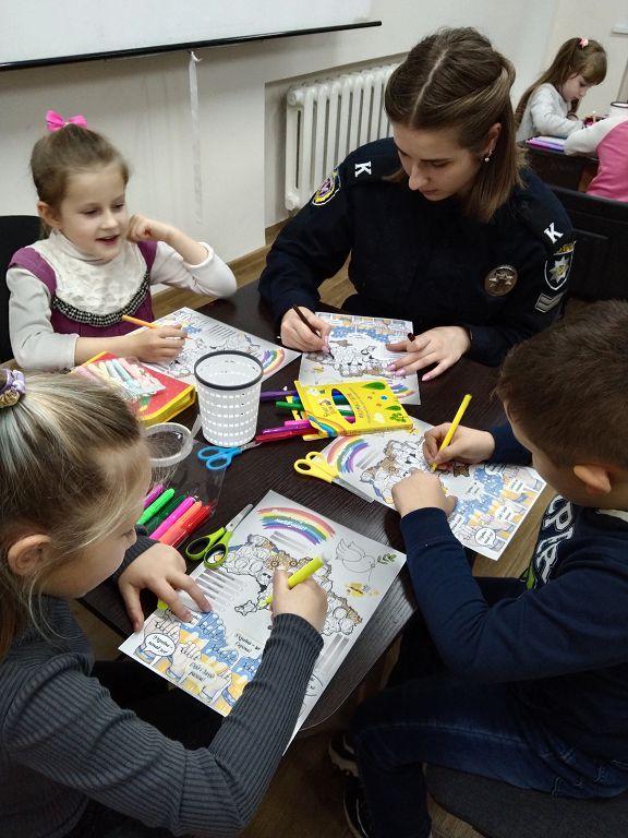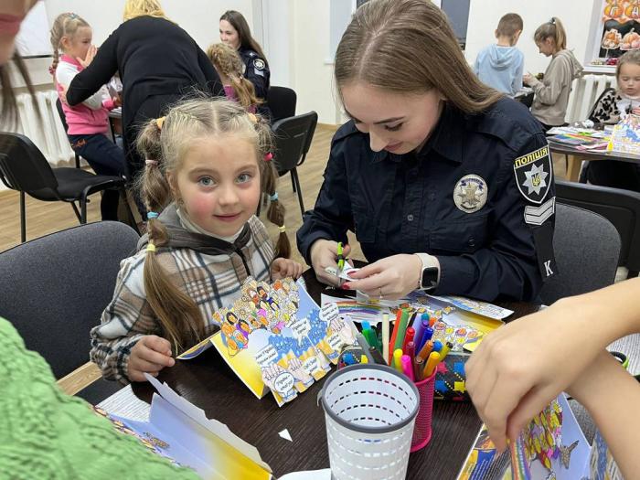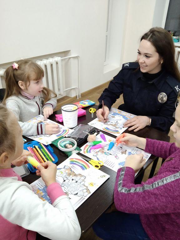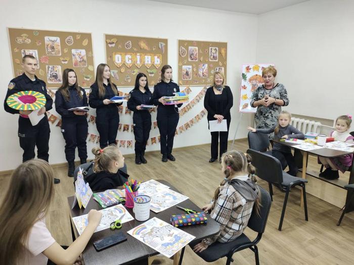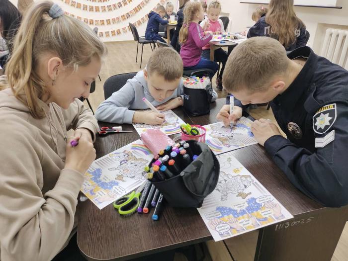 Зустріч відбулася за участі начальника відділу культури Сумської міської ради Наталії Цибульської, директора Центру Юлії Тараненко та керівника студії Юлії Горбачової. Курсанти-волонтери познайомили дітей-гуртківців із професією поліцейського, провели цікаву, пізнавальну вікторину, подарували вихованцям хобі-студії дизайну та технологій «Щасливий час» творчі матеріали й солодощі та разом виготовили патріотичну поробку «Вільні творити майбутнє».