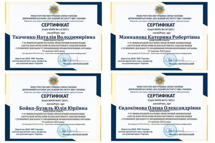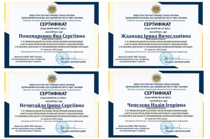 Представники кафедри соціології та психології факультету № 6 взяли участь у ІV Міжнародній науково-практичній конференції «Актуальні проблеми психологічного забезпечення службової діяльності працівників правоохоронних органів».