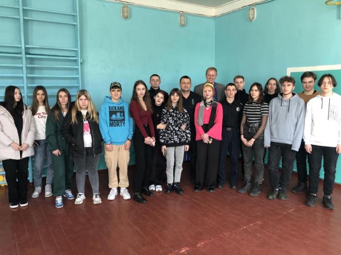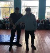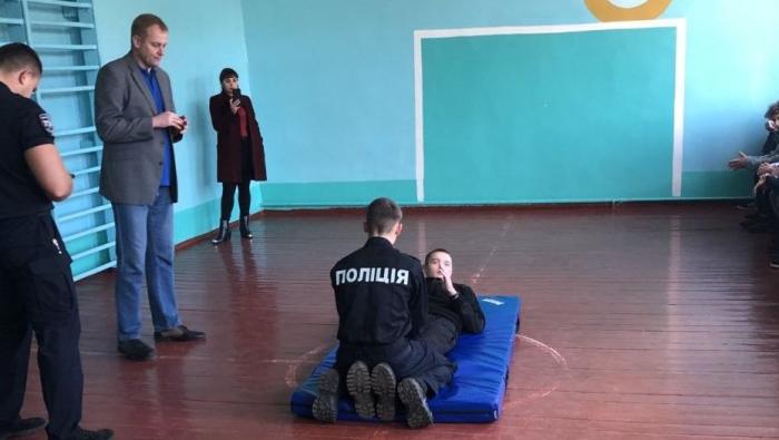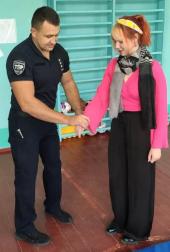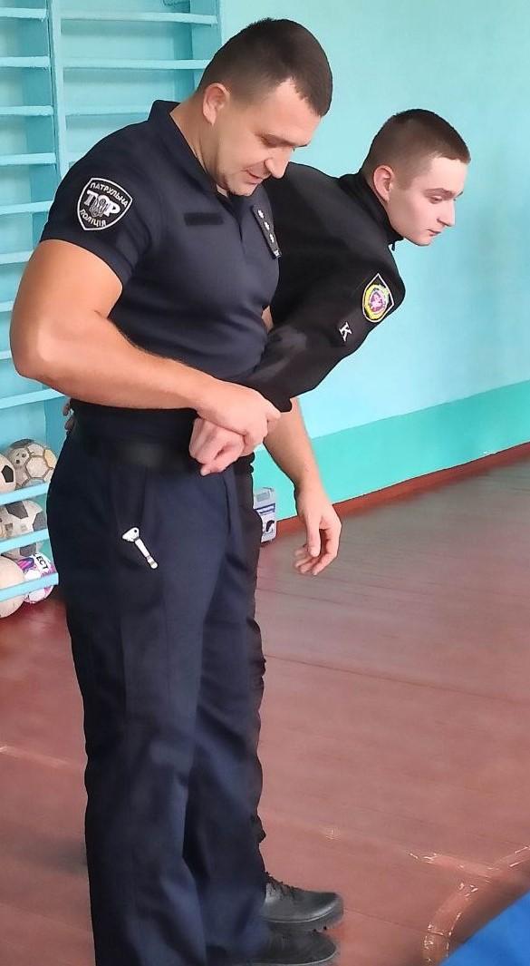 Інспектор взводу № 1 роти тактико-оперативного реагування Управління патрульної поліції у Сумській області Євгеній Медзіновський провів інформаційно-роз’яснювальну роботу з учнями щодо запобігання злочинності серед дітей, а також поінформував їх про форми, прояви, причини і наслідки домашнього насильства. Представник поліції разом із курсантами продемонстрували ефективні прийоми самозахисту, також виконання одного із найважливіших елементів іспиту з фізичної підготовленості – комплексну силову вправу. Наприкінці заходу школярі отримали вичерпні відповіді на свої запитання.