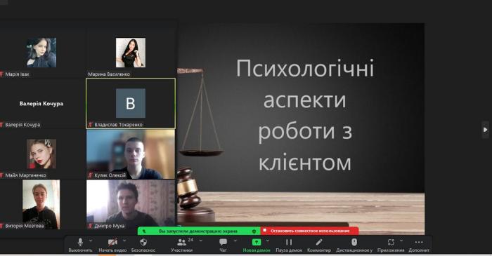 Відбулося чергове інтерактивне заняття для студентів-клініцистів Сумської філії ХНУВС за темою «Психологічні аспекти роботи з клієнтом», організоване керівником Сумського відділення Юридичної клініки ХНУВС Мариною Василенко за участі адвоката, регіонального представника молодіжного комітету Національної асоціації адвокатів України – UNBA NextGen у Сумській області Ольги Якименко. Вона наголосила, що використання системи інструментів міжособистісних комунікацій для юриста починається, як правило, зі спілкування з людиною, що звернулася до нього за правовою допомогою. У юриста-початківця, до якого вперше звернулися за професійною порадою, виникає безліч питань. Деякі ключові питання, що стосуються психологічних аспектів роботи з клієнтами та особливостей спілкування з ними, визначили й обговорили здобувачі вищої освіти у форматі квест-коучингу. Серед розглянутих тем – як встановити психологічний контакт з людиною, враховуючи її гендерні особливості, вік, соціальний статус, настрій в теперішній момент; як спрямувати бесіду в потрібне русло і керувати нею; чи потрібно прагнути одразу давати юридичну пораду або слід взяти паузу та призначити час нової зустрічі.