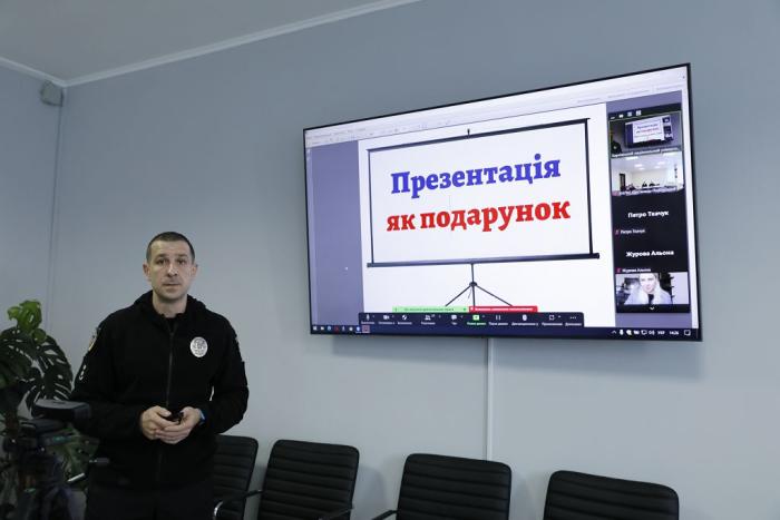 Під час інтерактивного тренінгу Костянтин Бугайчук – сертифікований тьютор із дистанційного та електронного навчання – акцентував увагу присутніх на важливості проєктування структури виступу, актуалізації проблемних питань та загальної структури доповіді на публічних заходах. Він також зупинився на загальних правилах дизайну слайдів, типових помилках у процесі підготовки презентації, що було проілюстровано на конкретних прикладах.