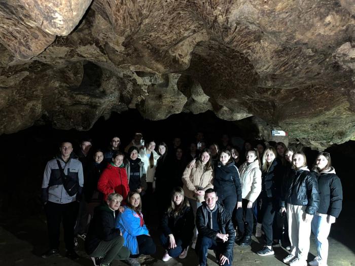 Кришталева печера – геологічна пам’ятка природи, що знаходиться в селі Кривче Тернопільської області. Студенти пройшлися туристичним маршрутом протяжністю 2,5 км, споглядаючи тунелі, зали й цікаві фігури у формі тварин. Відвідувачі довідалися, що свою назву печера отримала завдяки кристалам гіпсу, які покривають її стіни. Також екскурсовод розповіла про лікувальні властивості мінералів і особливий мікроклімат печери.