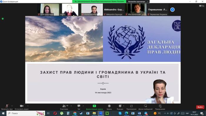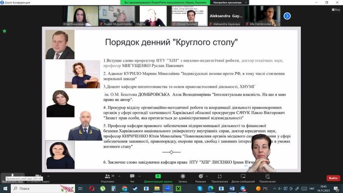 Професорка кафедри правового забезпечення підприємницької діяльності та фінансової безпеки факультету № 6 Юлія Кириченко взяла участь у роботі круглого столу на тему «Захист прав людини і громадянина», учасники якого розглянули актуальні питання захисту, ефективного забезпечення та особливості реалізації прав і свобод людини і громадянина в умовах воєнного стану.